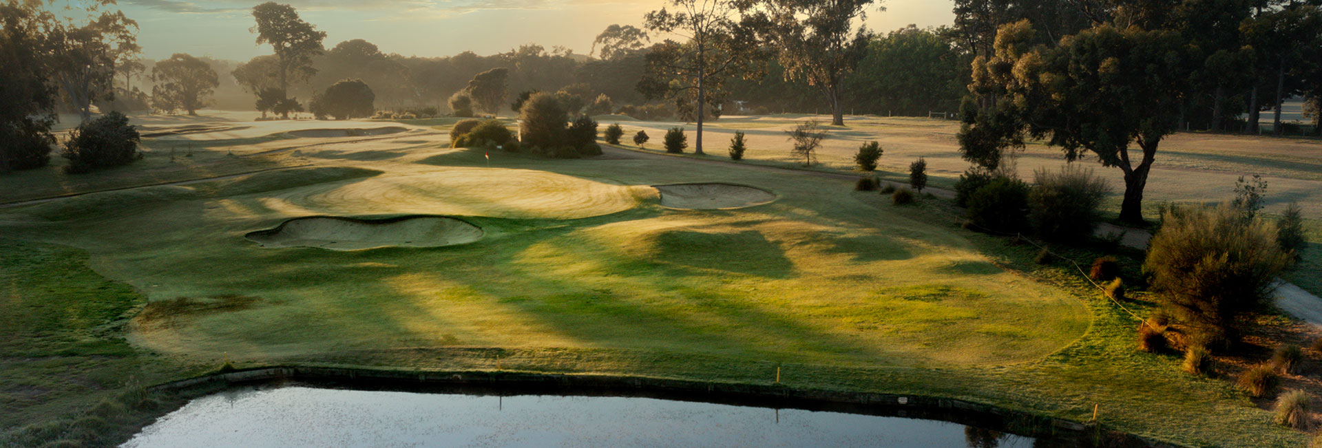 This is Portarlington Golf Club’s signature hole. It’s a par-3 that requires a water carry of about 120 metres to a green that sits right to left with a significant slope.